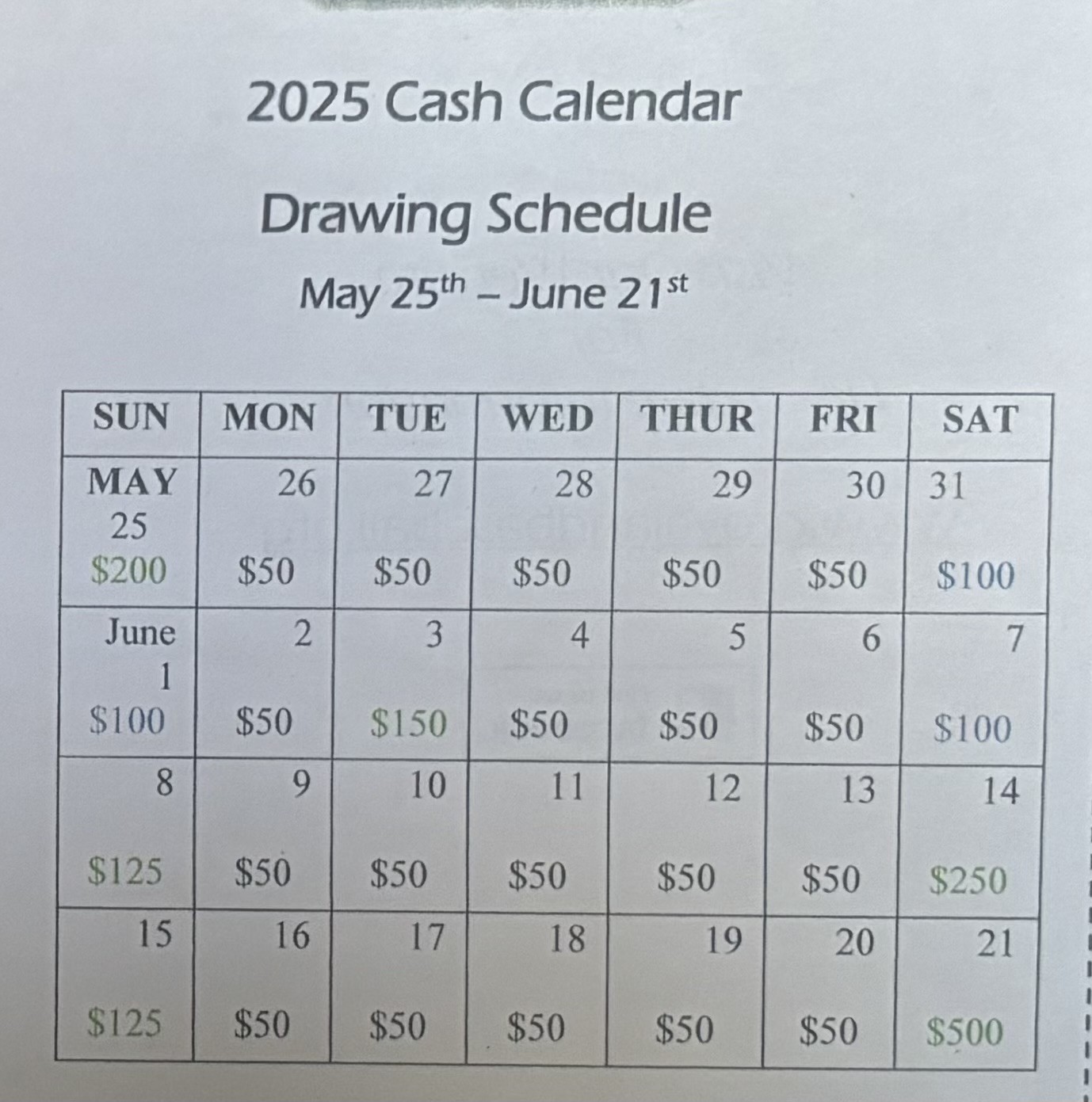 2025 Cash Calendar Fundraiser